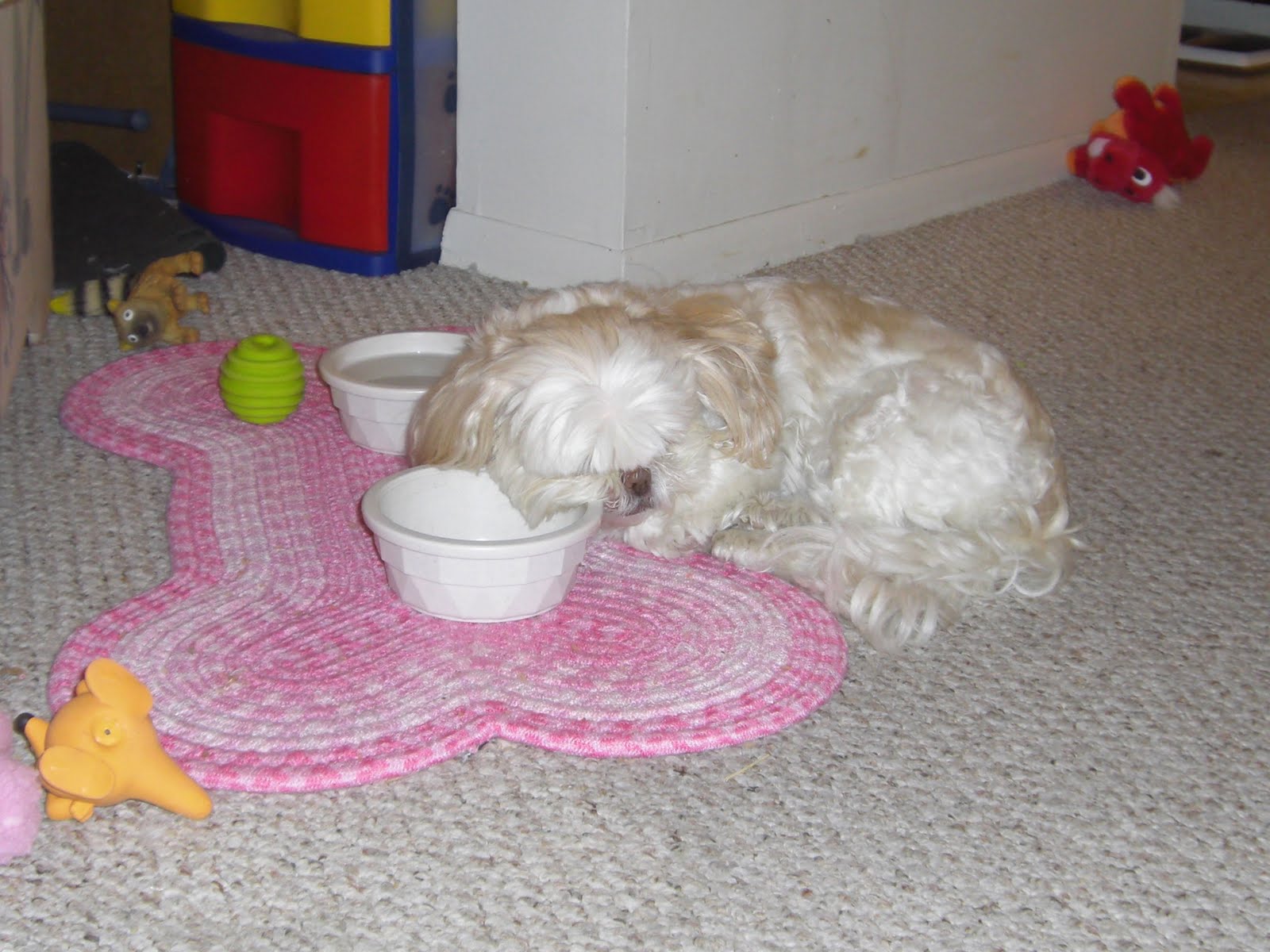 I'm an 13-year-old Shih Tzu named Buttons. I love toys. And cookies. And getting into trouble. And toys. And more toys. And then some more squeaky toys.